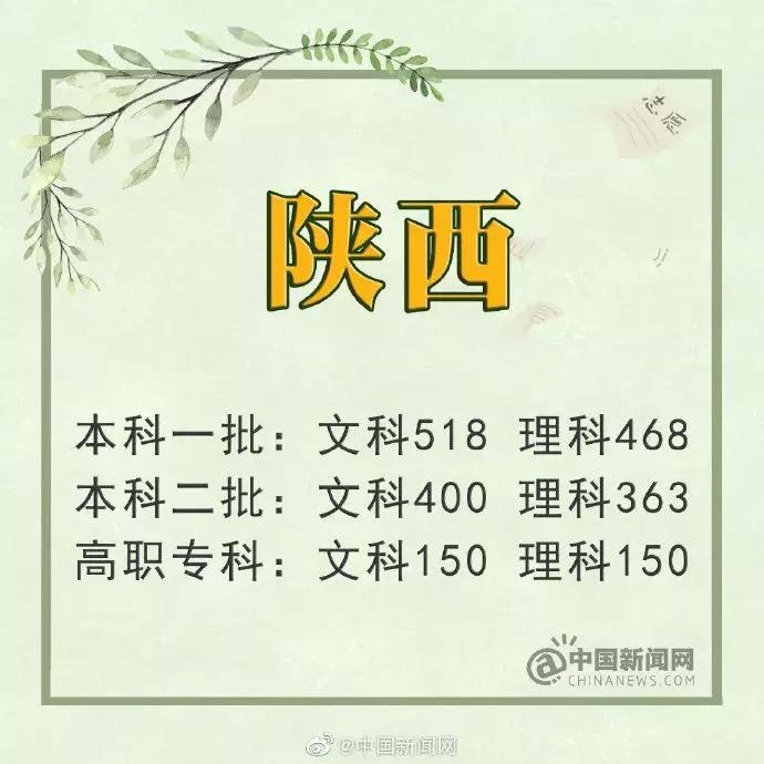 据陕西省考试管理中心官方微博消息,6月24日,2019年陕西高考录取分数线公布,本科一批文史类518分、理工类468分;本科二批文史类400分,理工类363分;文、理高职(专科):150分。