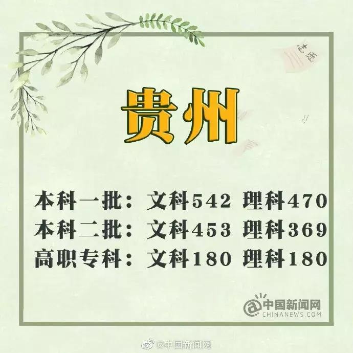 据贵州省教育厅微信公众号消息,6月24日,贵州省2019年普通高考录取投档控制分数线划定,一本理工类470分、文史类542分。二本理工类369分,文史类453分;高职(专科)院校理工类180分,文史类180分。