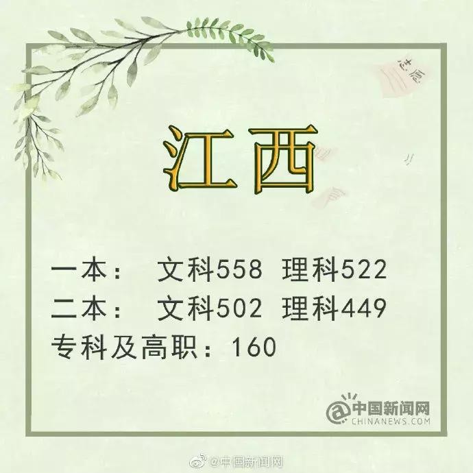 6月23日,江西省2019年高考分数线公布:第一批本科文史类558分、理工类522分;第二批本科文史类502分、理工类449分;文史、理工类高职(专科):160分。