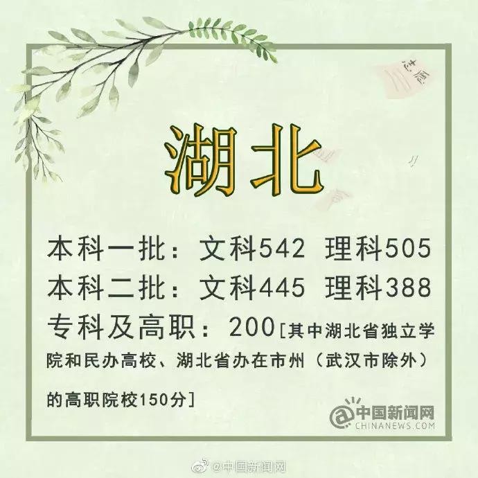 据湖北省高等学校招生委员会办公室官方微信消息,6月23日,2019年湖北高考分数线出炉:文史本科一批542分、本科二批445分;理工本科一批505分、本科二批388分。高职高专理工、文史类:200分,其中湖北省独立学院和民办高校、湖北省办在市州(武汉市除外)的高职院校150分。