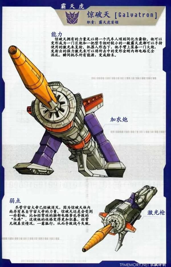 经过宇宙大帝的彻底改造,威震天变成了惊破天。比起前者,惊破天更加无情,更加阴险狡诈,拥有着更为强大的威力。而同时,他对于征服的渴望也愈加强烈,连整个宇宙都满足不了这个无情暴君的胃口。