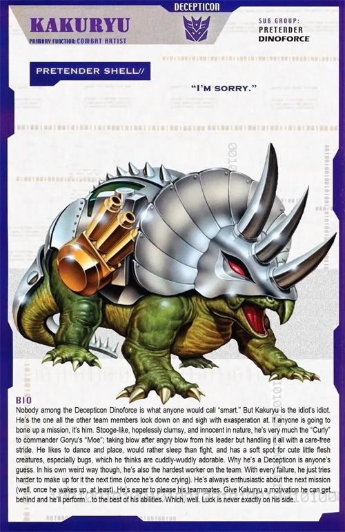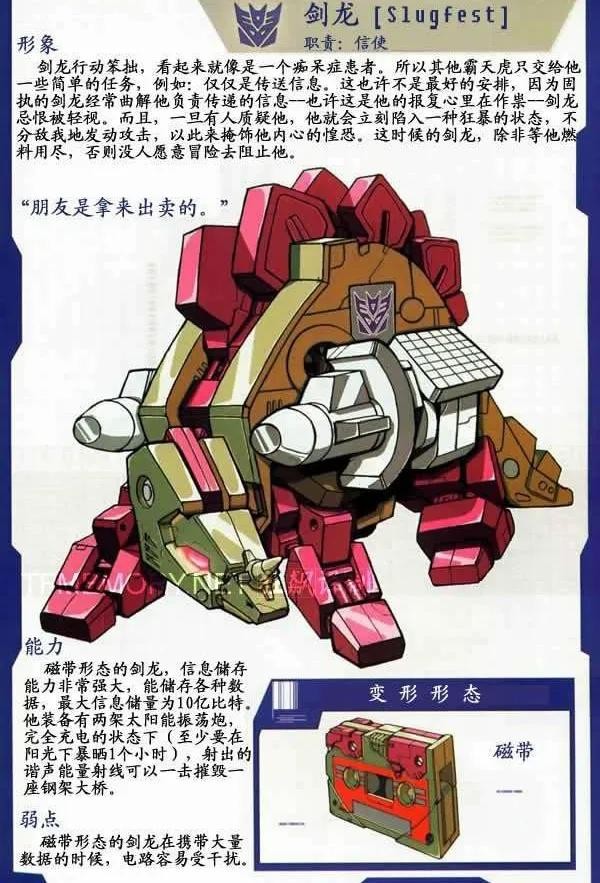 剑龙,霸天虎成员,隶属于声波的磁带军团,能够变形为磁带,极其强壮但也极其愚蠢。
