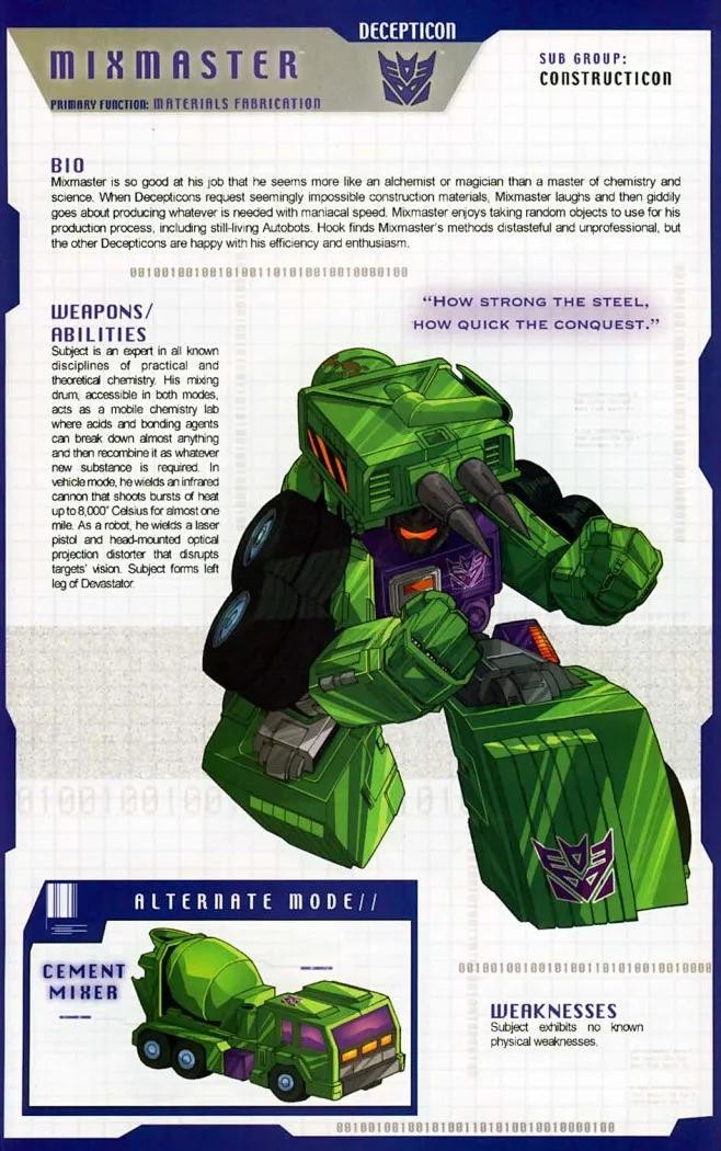 搅拌机才华横溢,与其说他是一个化学家或者科技工作者,倒不如说他更象一位冶金师或者医生。当狂派需要获得一些看似根本无法到手的建筑材料时,搅拌机就会洋洋得意的大笑起来,然后以令人惊叹的速度制造出这些所需之物。