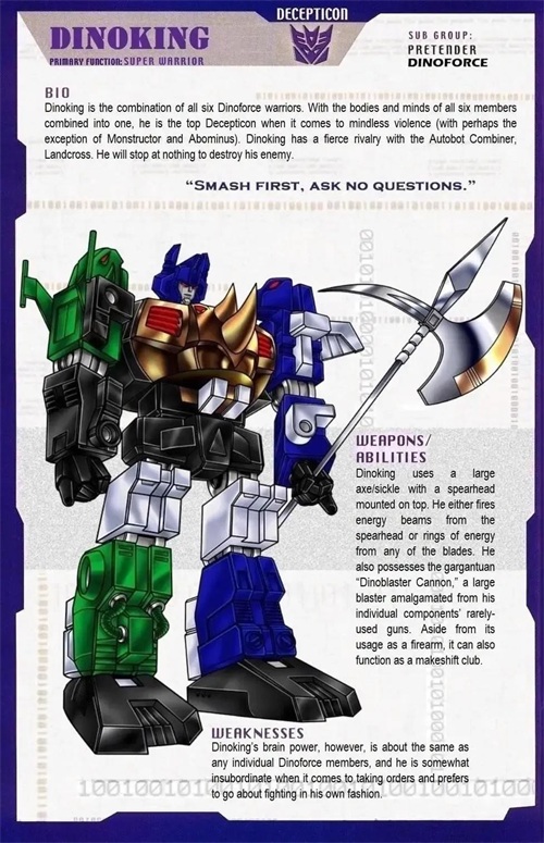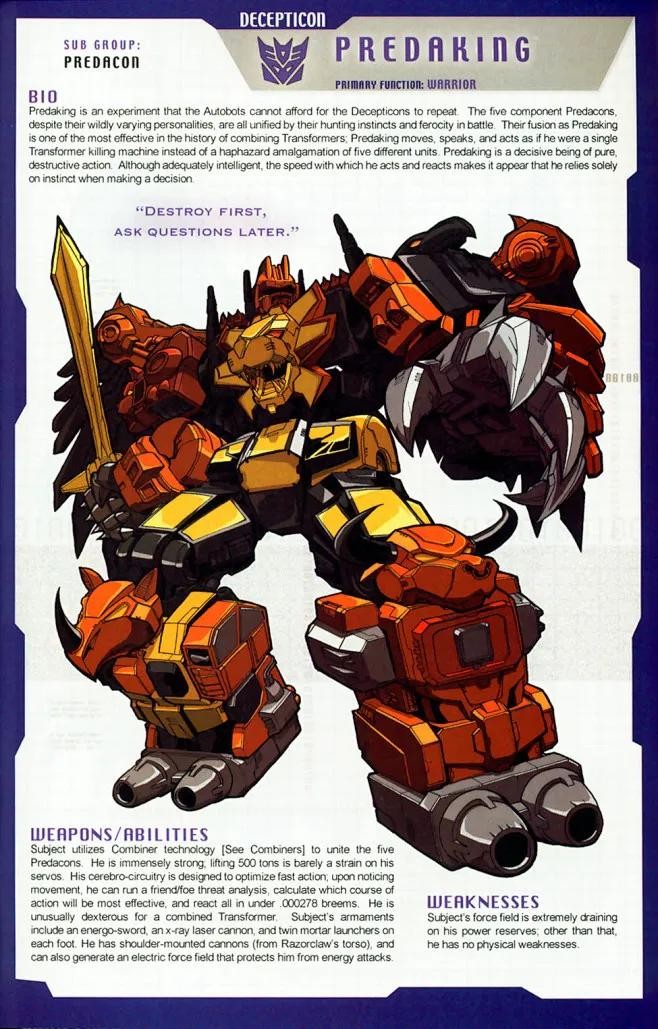 冲云霄,由五名巨狰狞合体而成的超级战士,拥有强大攻防能力,但常因野兽本能而无法冷静,是霸天虎的重要战斗力,曾在多次战役中大放异彩。