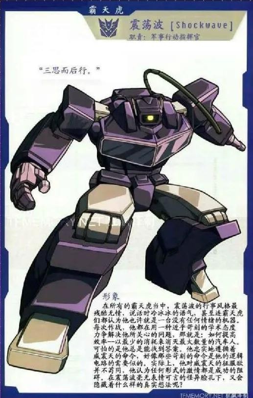 声波是霸天虎的情报参谋,侦察专家,掌握组织内所有的情报交流,是威震天不可或缺的副手之一。