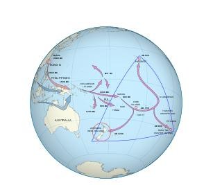 波利尼西亚人没有发明金属,罗盘,文字,但他们却点满了航海的技能点,如果在地图上画线,把北面的夏威夷岛到西南面的新西兰,再到东南方的复活节岛连接起来,这个三角形之间的数千个岛屿就是他们曾经殖民过的地方。