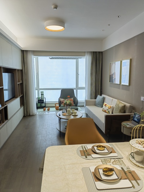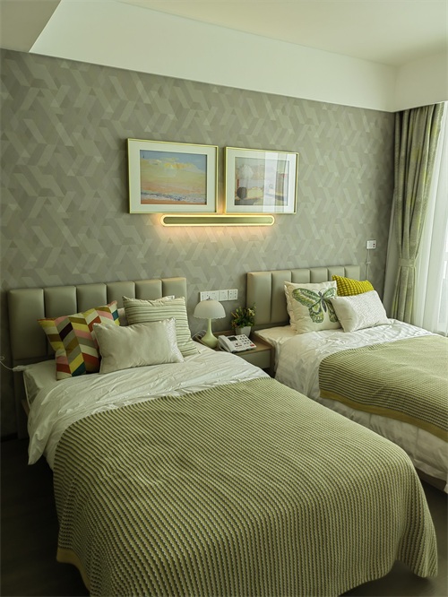 下面是活力区即独立生活区舒适一室一厅户型(56平)的样板间。我们可以看到,不同于其它养老机构病房式的布置,泰康之家房间整体色调氛围、家装布置非常温馨,各类设施一应俱全,适老化设施细致贴心。