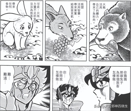 而瞬的性格,恰好也是付出型人格,甚至是牺牲型人格,当年为了描述瞬的性格,紫龙曾给星矢讲了个佛经故事,为了拯救一个饥饿的旅客,大熊用自己的体力带来了鱼,狐狸用自己的智慧带来了水果,而小白兔直接跳进篝火中,牺牲了自己。瞬就是那只小白兔,如同割肉喂鹰、舍身饲虎的佛!