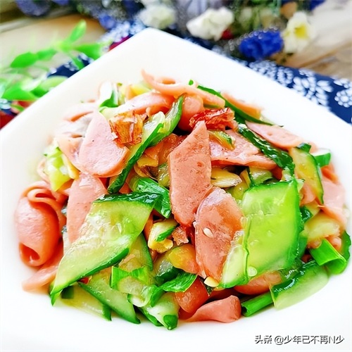 1、火腿肠炒黄瓜