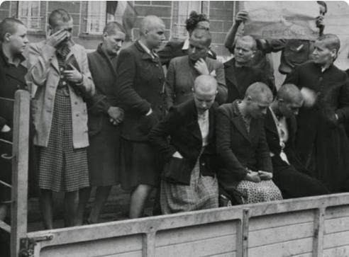 更可耻的是,二战胜利后,法国要清算战争账,却首先对自己国家的女子下了手。德国占领法国期间,很多女性无法维生,只能委身于入侵的德国军官,甚至很多女性遭到了强暴。她们本是受害者,可胜利以后,那些战时跪得比谁都快的法国男人却支棱了起来,对那些身不由己的女性进行荡妇羞辱和叛国羞辱,数十万女性由此被强行剃光了头发,以示她们“对不起国家”。