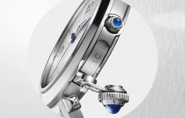 除此之外,Pasha系列还推出了个性化镌刻服务,镌刻区域在表冠下方,可以容纳两个字母,内容被“隐藏”,显得更具私密性。旋下腕表的标志性链式表冠,便能显露真容。