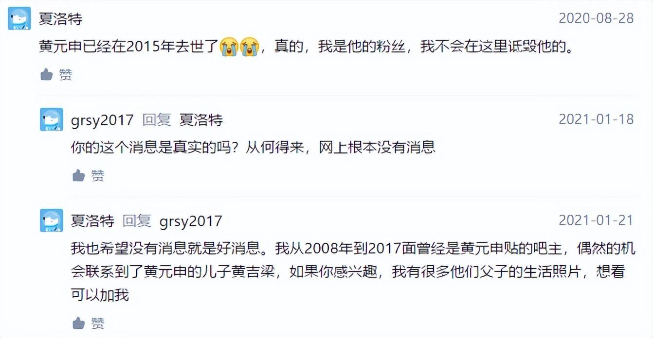 这个消息无疑是推翻了“黄元申去世”的假消息,
