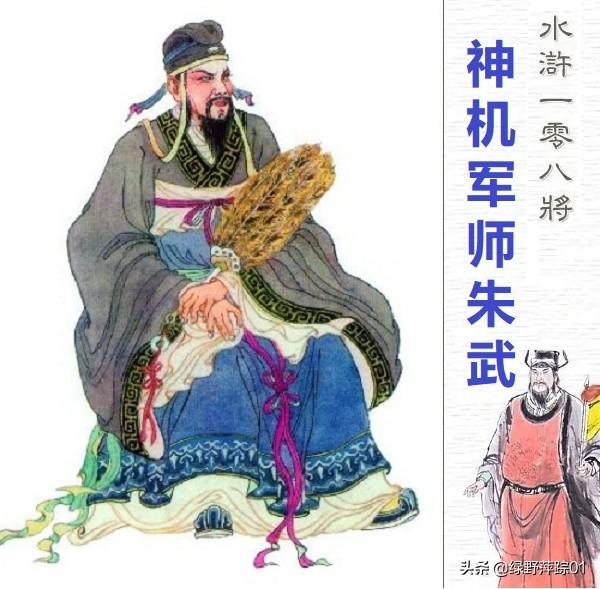 吴用出场之前,还有一个梁山好汉被贴上了诸葛亮的标签,他就是少华山的大寨主神机军师朱武。施耐庵是这样赞朱武的:阵法方诸葛,阴谋胜范蠡。