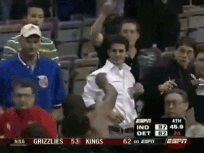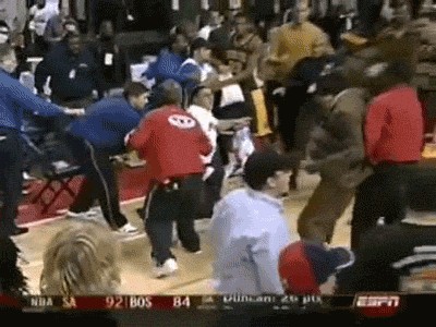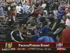 时间回到2004年11月19日,季后赛东部决赛第三场活塞队主场迎战步行者队,在比赛时间还剩45.9秒的时候,活塞队已经落后了15分,而这个时候的阿泰斯特却还对本.华莱士恶狠狠的犯规,本来大比分落后的华莱士心情就不爽,结果华莱士重重的推了阿泰斯特一把,结果导致双方发生了激烈的冲突,随后很快被拉开,