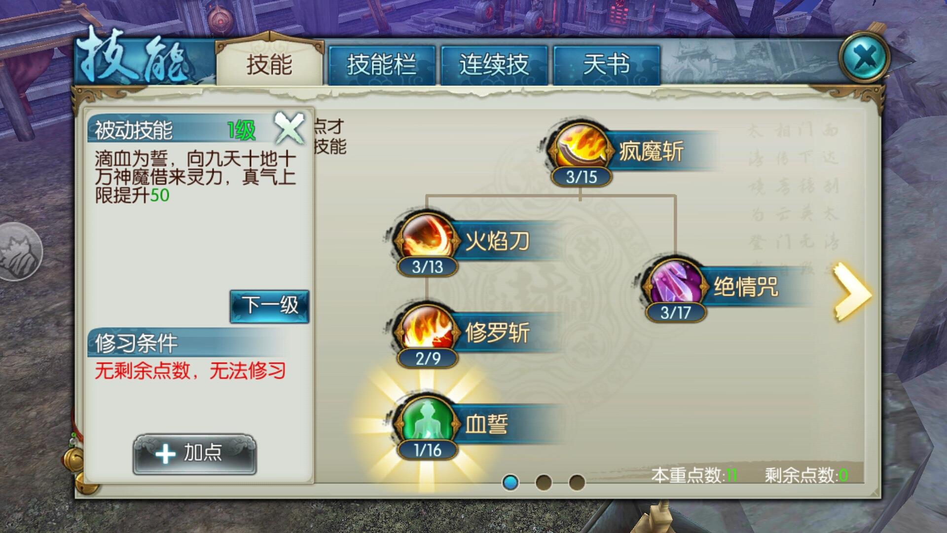 在技能方面很大程度保留了端游的特色,我用的是鬼王,擅长防御和控制,适合单刷的玩家。技能中火焰刀,刀燃烈焰,充满暴戾之气。修罗斯释放后会有多个巨刃杀伤。与狂野、暴力的嗜血的鬼王很搭。此外绝情咒和端游中的痴情咒技能相似。不过手游中技能繁多,单单鬼王就有20个技能,玩家要自己缕清思路。