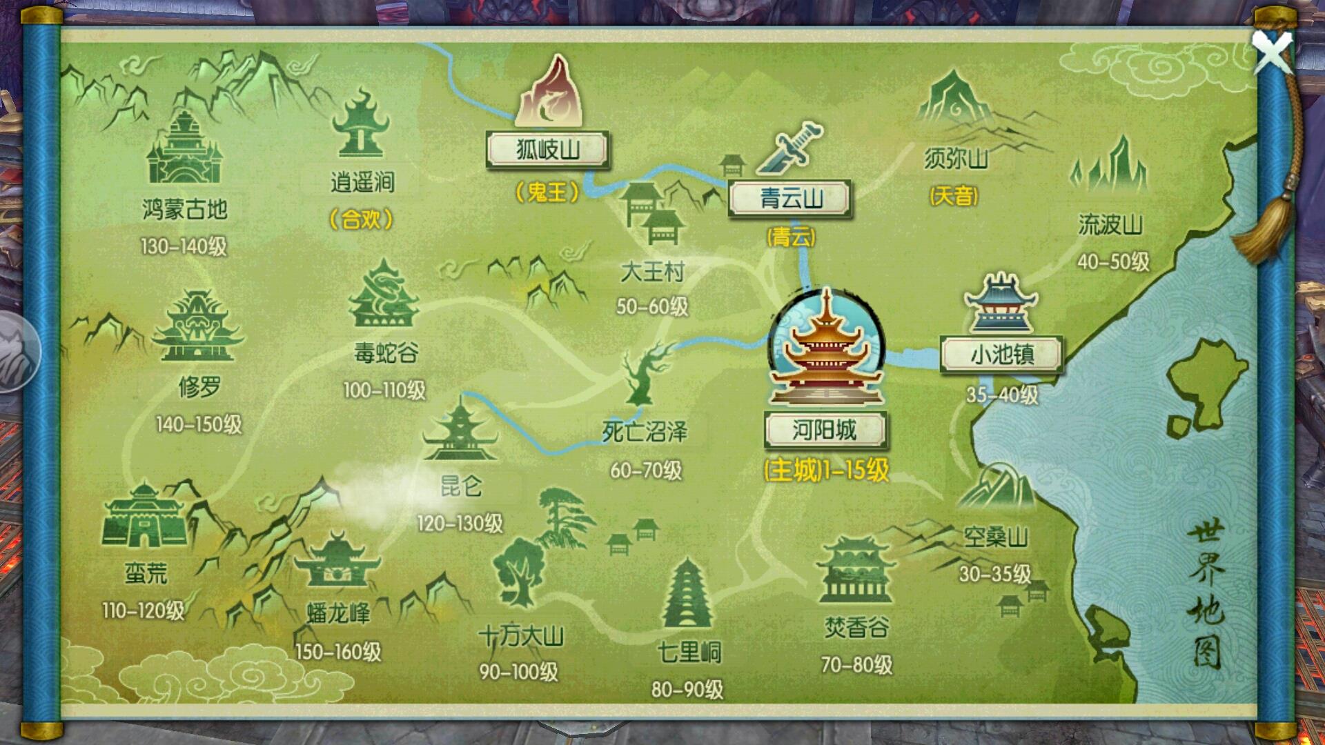 还记得那一年的河阳城吗?城外芳草萋萋,生机勃勃。城内市井繁荣。在忘川河桥上留下多少熟悉的身影。,痴男怨女在此喜结连理,情人在塔楼上御剑望月。此外青云山仙云缭绕竹子与层层阶梯相辉映。狐岐山以深紫色场景烘托孤寂黑暗的气氛。不过可能是小屏幕的原因与端游画面效果略有差距。