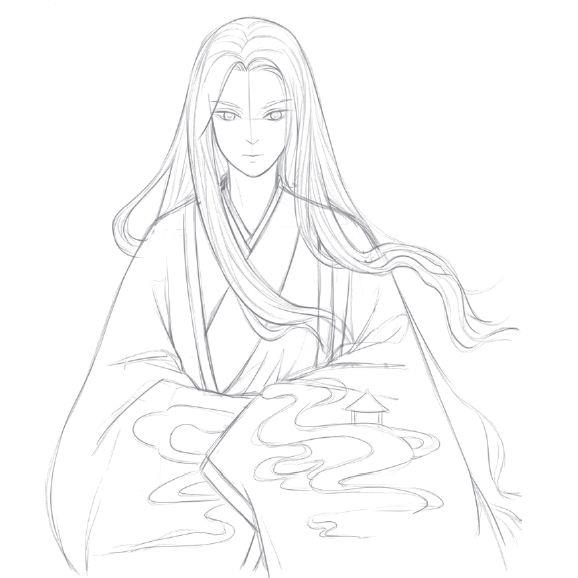 7、擦掉那些辅助的线条,只留下需要的线稿,再画出衣服上的花纹图案,画一些比较有古风感觉的图案。