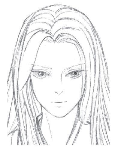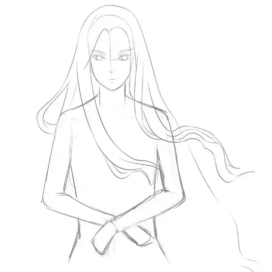 8、细化发丝,画出发丝飘动的方向和穿插关系。简单地画一些衣服上的褶皱,褶皱位置集中在大关节的地方。