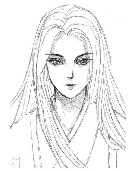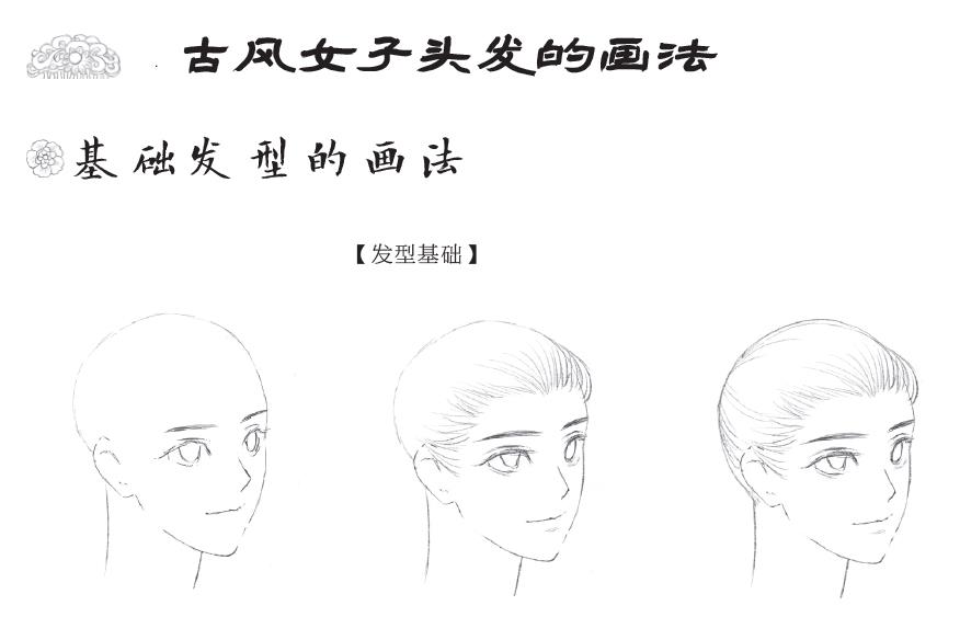 5、在头顶画出头发的造型,注意头顶头发的厚度。画出头发飘动的感觉,让画面有动感,也有了古风飘逸的韵味。