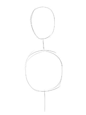 1、画两个圆分别表示人物的头部和胸腔的位置,注意这两个体积的大小比例。用曲线表示脊椎线的动态。