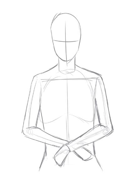 6、擦淡人体的线条,再在画出衣服的轮廓线。先画里边衣服的领子,再画外面的衣服,画出衣服的层次感。
