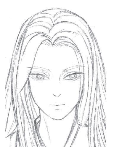 20、外衣的领子用稍微深一些的颜色绘制,但是这个颜色要比头发的颜色浅,画出这些不同部位的深浅区别来。