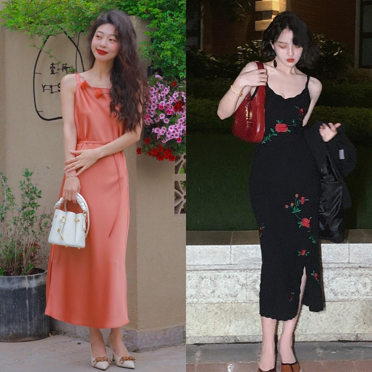 要想穿出高级一些的风格,那就可以入手,加入了“腰带设计”的吊带开叉裙。但如果想让你的搭配看起来更性感,那不妨尝试下图中(右图)这种修身版型的吊带开叉裙,将身材的曲线感勾勒出来,显瘦还很有女人味。