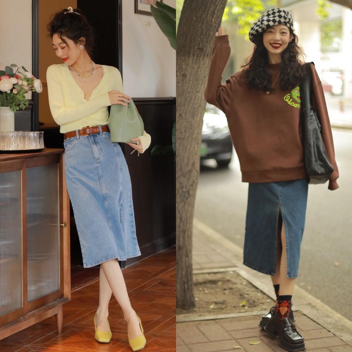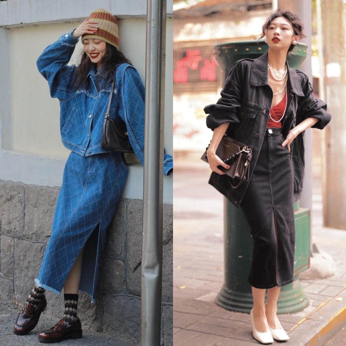 要想演绎出复古风穿搭,那可千万不能错过牛仔开叉裙。牛仔的材质本就带有复古气息,同时还能打造出街头感,与开叉半身裙融合在一起不仅能演绎出法式复古风穿搭,还能打造出减龄的效果。