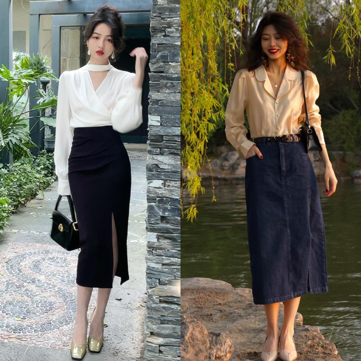 如果喜欢更加知性一些的风格,还可以选择衬衣和开叉裙的搭配,将衬衣的干练与性感的开叉裙结合在一起,更能演绎出优雅知性的魅力,很适合上班族女人借鉴。若想让你的搭配看起来更加日常,那就可以用牛仔开衩裙搭配衬衣。