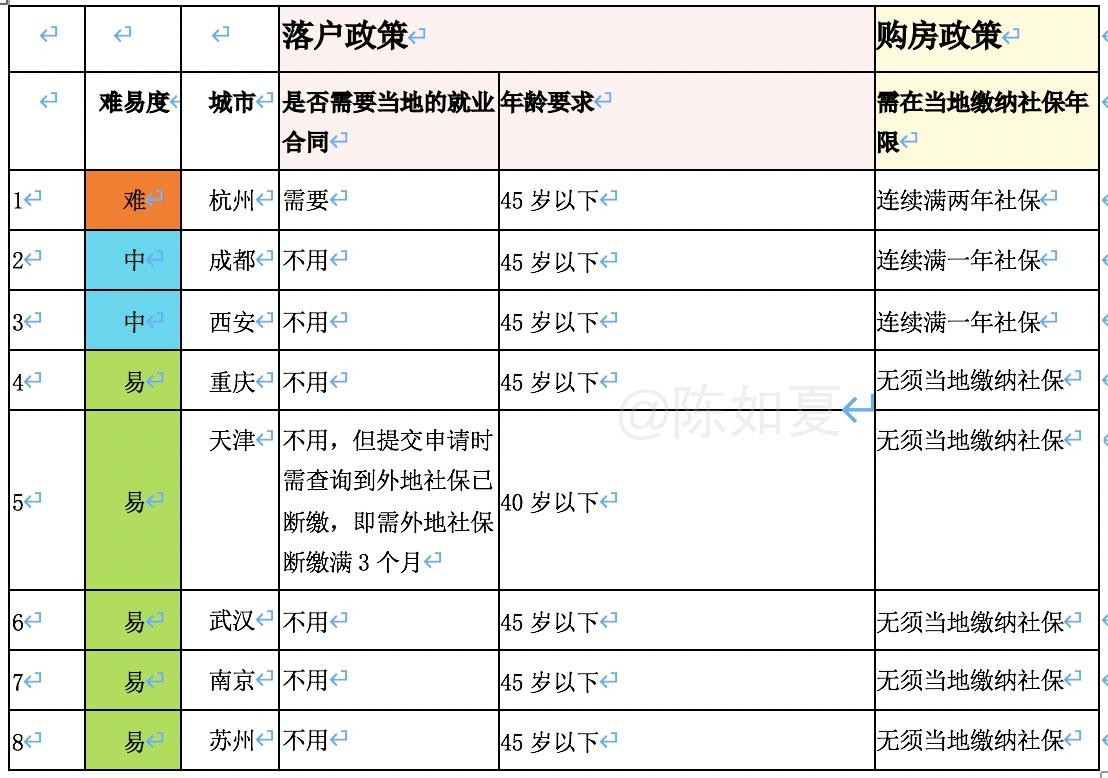 注:以上落户政策,是按本科学历的要求整理的,如你是其他学历,可自行查询当地的详细落户要求。获得当地户籍后,满足以上购房要求,即可买房。(由于各地政策可能会突然调整,如有和表中不一致的地方,欢迎大家在评论区指出,我进行更新哈~)