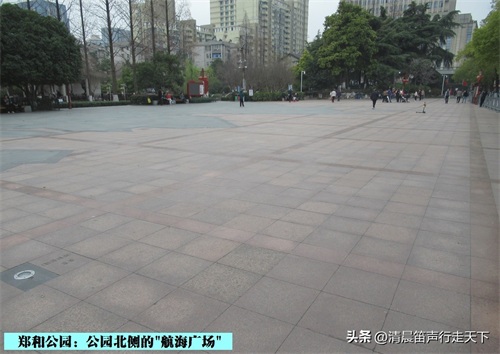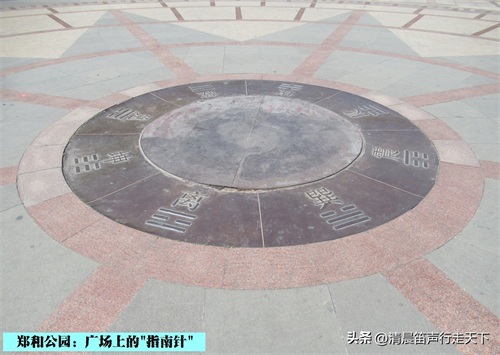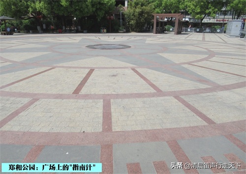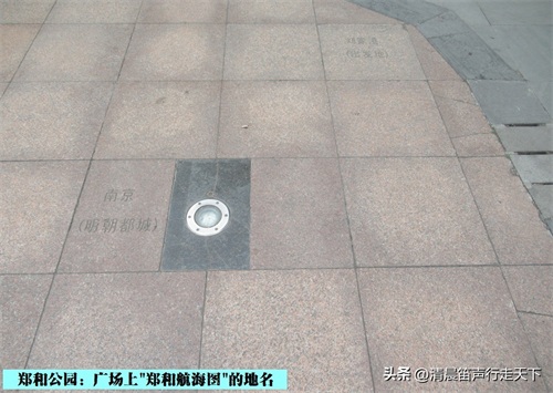 郑和公园的北侧是“航海广场”,一片花岗岩地坪上为巨大的“郑和航海图”,在地坪上时而可以看见一些“航海图”上的地名标识。