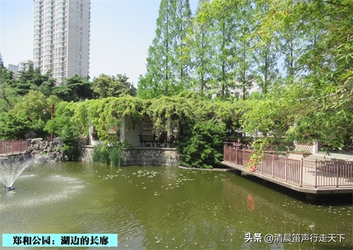郑和公园占地面积约24000平方米,建筑面积2100平方米,公园内有古色古香的亭阁、优雅的长廊和庭院式的“郑和纪念馆”,园内浓荫蓊郁,碧池清涟,亭台楼阁,别有景致。