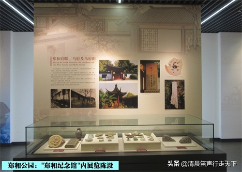 郑和纪念馆,位于郑和公园的东南角。纪念馆大门朝东,占地面积近3000平方米,由两幢仿明清建筑组成,建筑面积约734.20平方米。四周围以花墙,形成园中之园,院内置以假山、修竹、池水,典雅幽静。
