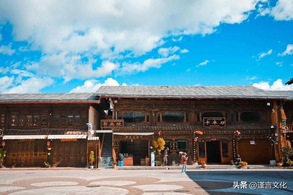 独克宗古城内有许多著名的景点,如龟山公园、月光广场、大佛寺等。龟山公园是独克宗古城的最高点,这里有一座巨大的转经筒,高 21 米,重 60 吨,是世界上最大的转经筒。月光广场是独克宗古城的中心,这里是举行各种民俗活动的场所。大佛寺内有一座巨大的佛像,高达 21 米,是独克宗古城的标志性建筑。