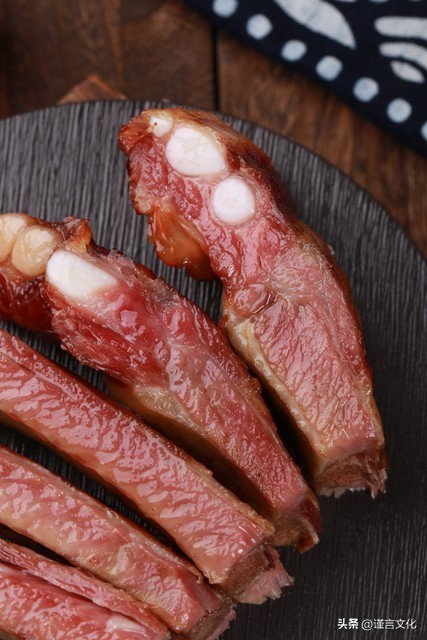腊排骨是云南的传统美食之一,也是茶马古道上的重要美食。腊排骨以其独特的口感和浓郁的香味而受到人们的喜爱。腊排骨是用新鲜的排骨腌制而成的,经过长时间的晾晒和风干,口感紧实,香味浓郁。腊排骨可以用来煲汤、做火锅等,口感鲜美,营养丰富。