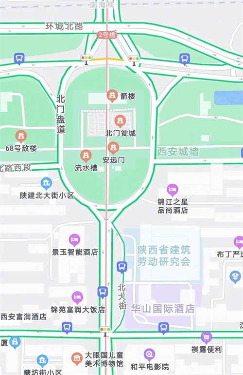 如果从北大街向北出(西安明城墙)北门(安远门)沿未央大道一直向北走,过了渭河可以到铜川、耀县、延安等地,再往北,过了黄河还可以通到山西。