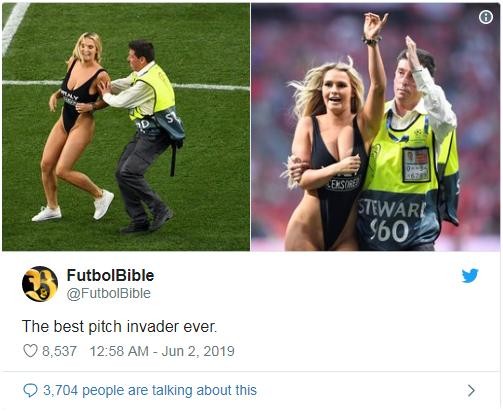 性感女球迷闯入欧冠决赛现场 事后Ins吸粉数十万