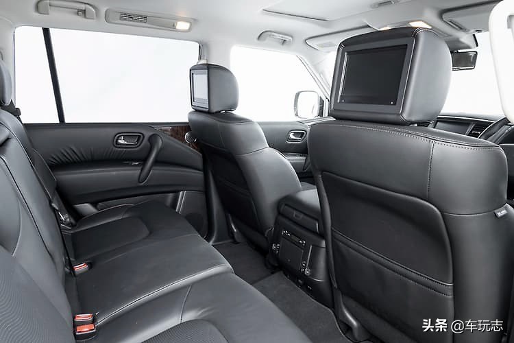 后部娱乐系统的特点是在前头枕后面安装了两个屏幕,以及无线耳机和红外遥控器。这样可以使后排座椅保持舒适,但整个系统笨重且难以使用。