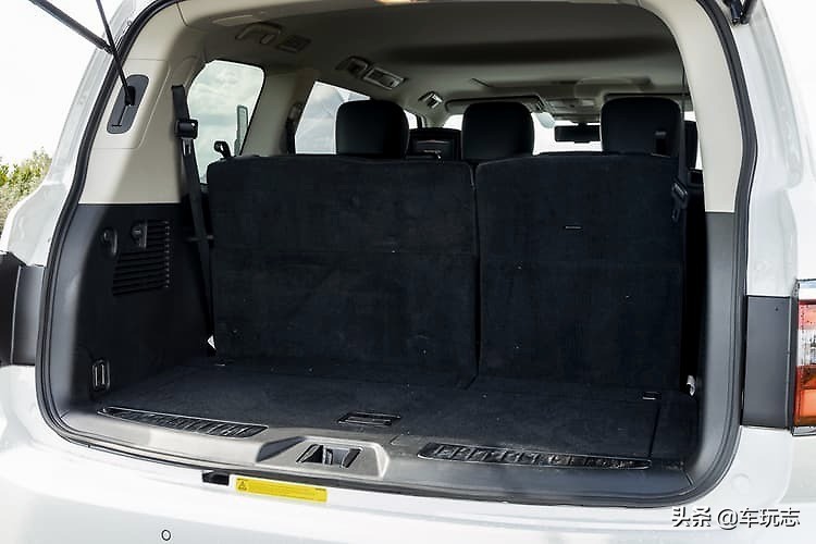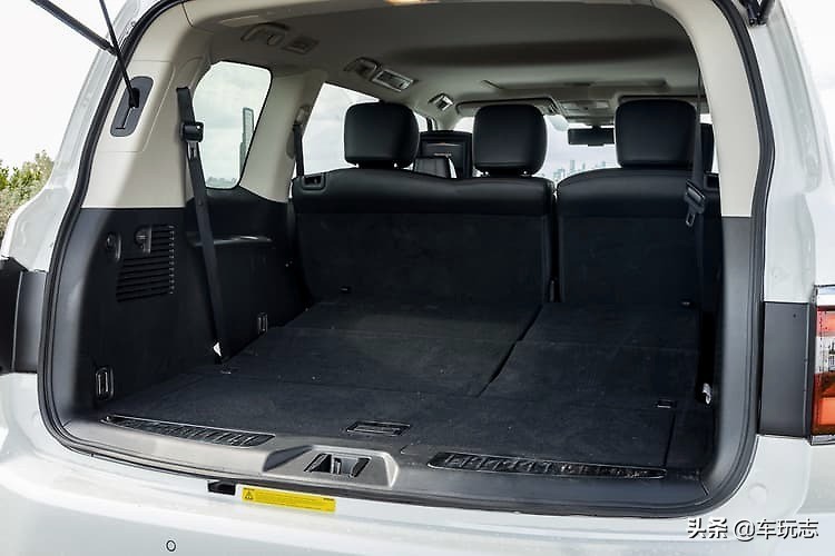 日产汽车提名行李箱空间为第三排后面的550升,第三排和第二排座椅折叠后增加到1490L和3170L。电动后挡板也是Ti-L上的标准设备,但不是Ti。