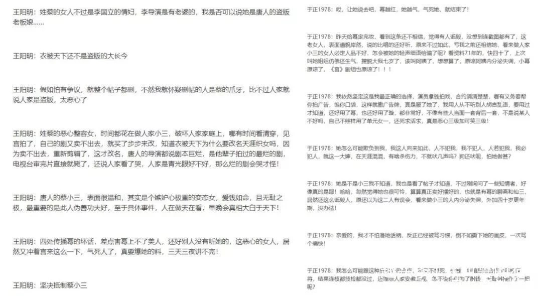 某平台公布了一段于正与其他人的对话,言语中指名道姓的提出蔡艺侬当小三上位,甚至说她妒忌杨幂
