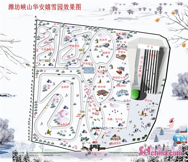 作为峡山春节系列活动之一的华安冰雪奇缘大型亲子主题嬉雪乐园更将于1月1日开门纳客,提前拉开峡山春节节会序幕,为峡山灯会等系列节会预热,是本届迎春灯会的联动旅游项目之一,倾力打造的一座大型亲子嬉雪主题乐园,项目位于位于潍坊市峡山生态经济开发区岞山街办,潍胶路和潍峡路交汇处东侧,滨邻潍河,峡山区华安温泉康养小镇内,乐园总规划占地8000亩,一期造雪面积8万平米,可同时容纳2万人嬉雪游乐,乐园创新以“冰雪奇缘”为主题,打造一个集艺术化、亲子化、童趣化相融合的冰雪王国,乐园游艺项目包括“雪圈道、荷兰滑道、雪地香蕉船、雪地坦克、雪域王国、自由嬉雪区”等众多游乐项目,创新打造现代冬季综合全家旅游目的地。