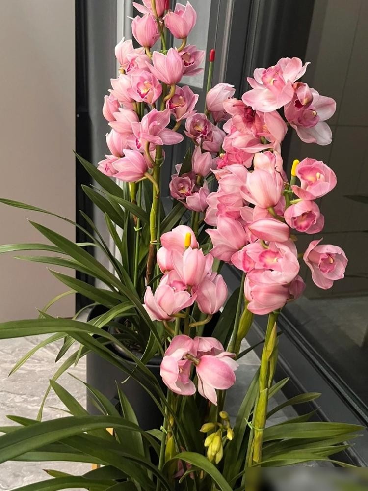 大花蕙兰,大花蕙兰是一种非常美丽的花卉,它的花朵色彩丰富,花瓣宽大,给人一种高贵优雅的感觉,大花蕙兰在冬天开放,是一种非常有代表性的花卉,适合家庭养护。