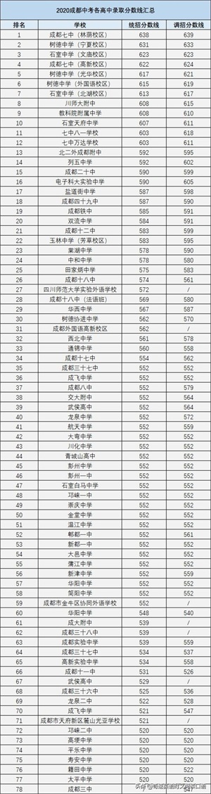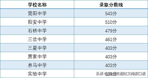 据分享,2020年简阳市各大高中录取分数如下: