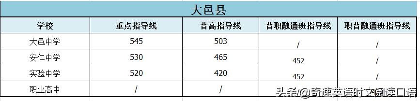 2020年大邑高中阶段教育学校统一招生考试公办普通高中录取分数线公布如下: