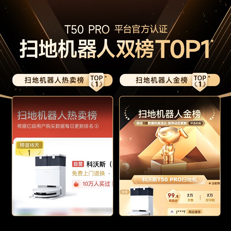在智能化方面,T50 PRO同样表现出色。它支持智能语音交互和多种控制方式,用户可以通过语音指令或手机APP远程控制扫地机器人,操作简便快捷。同时,T50 PRO还具备自动集尘和自动清洗拖布的功能,进一步减轻了用户的清洁负担,凭借出色的综合性能,位居扫地机销量榜TOP1。
