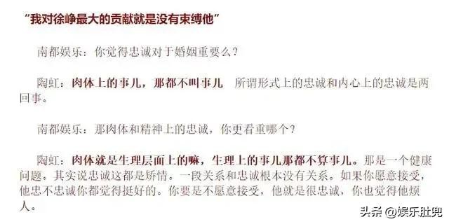 网友的一番好意,换来的却是陶虹的一句“肉体的事都不叫事,形式上的忠诚和内心的忠诚是两回事。”