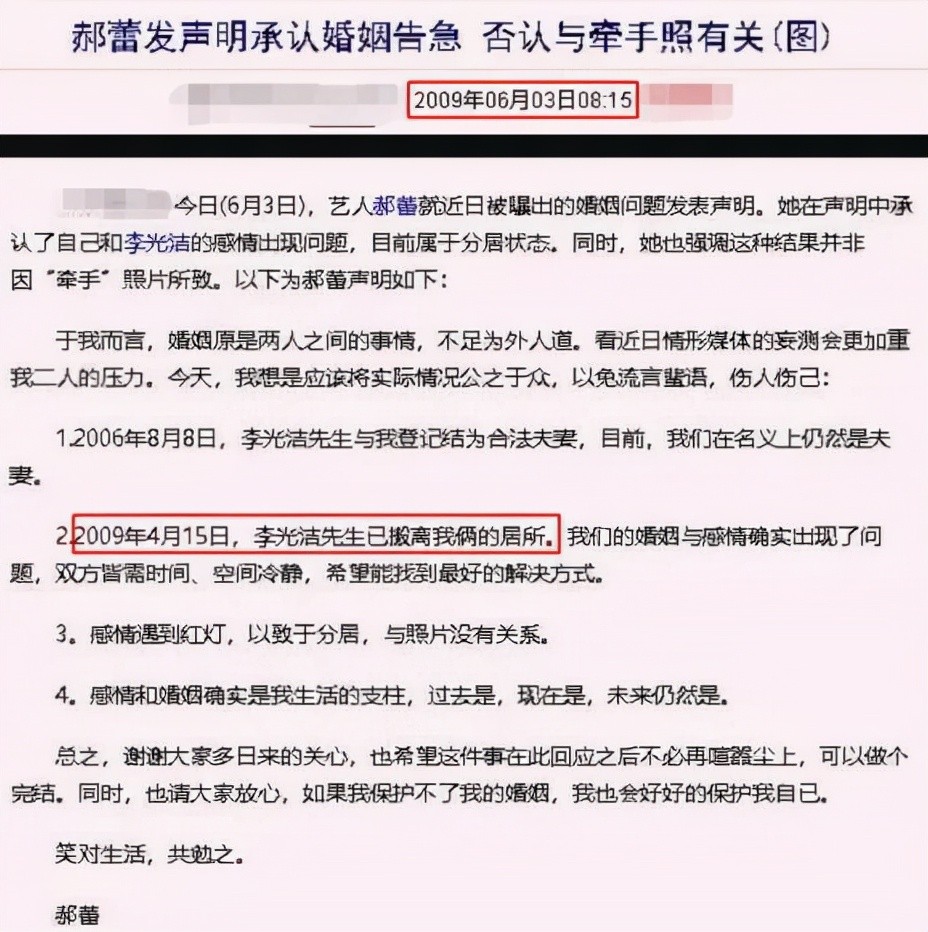 但紧接着郝蕾发出了声明,两人感情早已经破裂分居了。