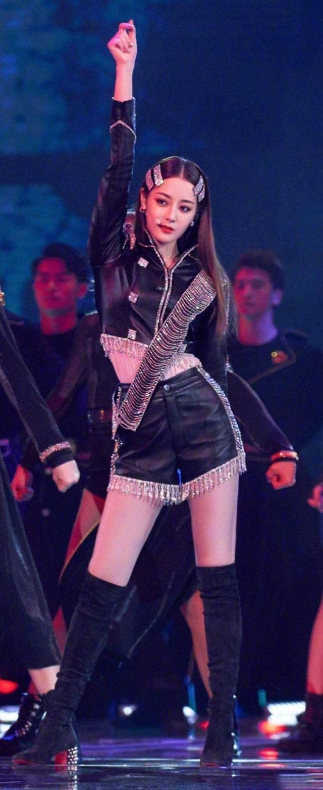 在跨年夜当晚,迪丽热巴上半身穿着黑色的皮衣,上面还有很流行的铆钉元素,而下半身穿的是皮短裤的装饰,上面的搭配可以说非常的炫酷,瞬间让人感觉到黑色的风格一下子就提起来了,整体风格非常的明显,可以说是非常的帅气了,看得观众都非常动心,不得不说太帅气了呢!
