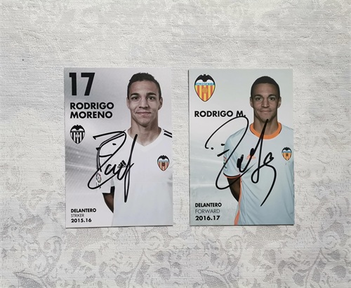 效力瓦伦西亚六年,罗德里戈为“蝙蝠军团”出战各项赛事二百二十场,贡献五十九粒进球及四十一次助攻,成为瓦伦西亚锋线的顶梁柱。我曾在2015-2016赛季及2016-2017赛季都收到了罗德里戈寄来的瓦伦西亚亲笔签名卡。