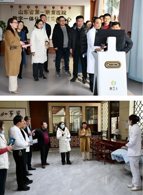 会后,姜静一行实地参观了医院数字一体化脊柱康复中心、体外反搏治疗中心、岩盐气溶胶治疗室、蜡浴室、智慧病房、会议中心等场所,学习团成员分别与省第一康复医院相关科室负责人进行了对接,深度学习和探讨了具体业务工作。